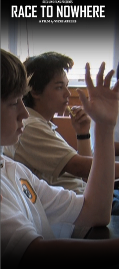 “Race to Nowhere.” Great title. I love that a kid says it, in the film. He’s trying to put his life into words. He pauses, searching for the right phrase. “It’s like a… race to nowhere.” Well done, kid.
